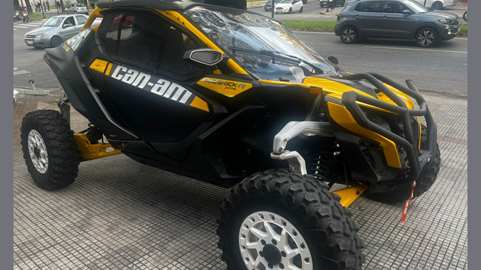 Can-Am Maverick R Xrs, ano 2024. Um UTV top de linha, pronto para qualquer aventura! Equipado com motor 999T, tricillíndrico, turbo, com 999 cc, refrigeração líquida com intercooler integrado e filtro de ar de alto desempenho e 240 HP de potência, o que garante a diversão em qualquer situação. Equipado com espelhos retrovisores laterais, para-choque dianteiro, pára-brisa com limpador, guincho elétrico, bolsas de porta, telas laterais nas portas de entrada de ar para o intercooler e muito mais! Unidade com apenas 26 horas de uso. Aproveite esta oportunidade!
