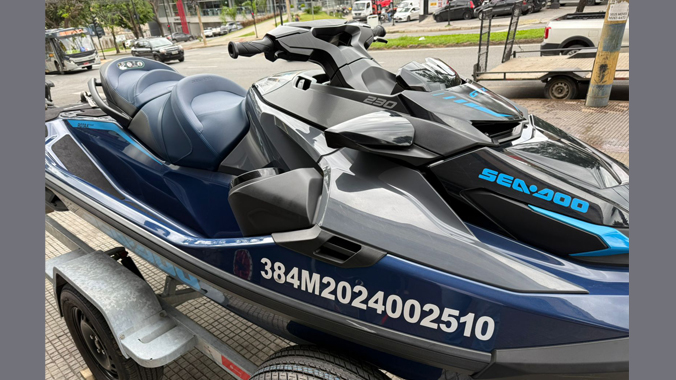 Moto aquática Sea-Doo GTX 230, modelo 2024. Equipada com motor Rotax 1630 ACE de 230 hp, sistema iBR de freio e reverso inteligentes, sistema de som Bluetooth, escada de reembarque e muito mais! Embarcação em excelente estado, de único dono, com apenas 27 horas de uso, comprado na GP Powersports. Venha ver de perto e feche um excelente negócio!