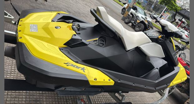 Moto aquática Sea-Doo Spark 2Up, ano 2014, em excelente estado, equipado com um motor Rotax 900 H.O. ACE de 90 HP, revisado e com apenas 150 horas de uso. Uma embarcação que oferece muita diversão, além de ser fácil de manter e transportar. Não acompanha carreta. Venha ver de perto!