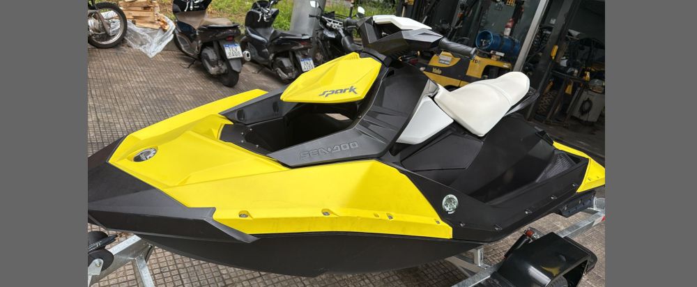 Moto aquática Sea-Doo Spark 2Up, ano 2014, em excelente estado, equipado com um motor Rotax 900 H.O. ACE de 90 HP, revisado e com apenas 150 horas de uso. Uma embarcação que oferece muita diversão, além de ser fácil de manter e transportar. Não acompanha carreta. Venha ver de perto!