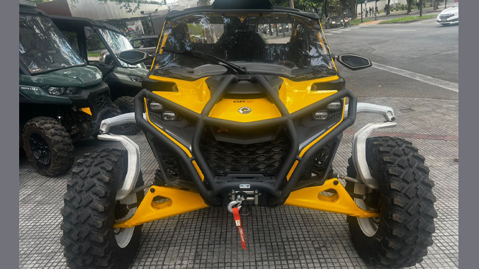 Can-Am Maverick R Xrs, ano 2024. Um UTV top de linha, pronto para qualquer aventura! Equipado com motor 999T, tricillíndrico, turbo, com 999 cc, refrigeração líquida com intercooler integrado e filtro de ar de alto desempenho e 240 HP de potência, o que garante a diversão em qualquer situação. Equipado com espelhos retrovisores laterais, para-choque dianteiro, pára-brisa com limpador, guincho elétrico, bolsas de porta, telas laterais nas portas de entrada de ar para o intercooler e muito mais! Unidade com apenas 26 horas de uso. Aproveite esta oportunidade!