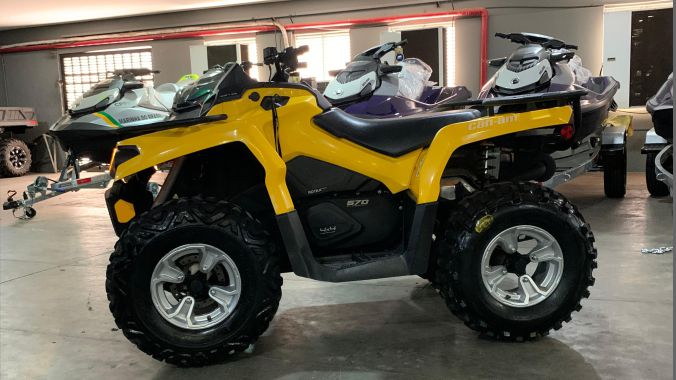 Este quadriciclo Can-Am Outlander 570, ano 2016, é um veículo capaz de rodar em diversos tipos de terreno com segurança, potência e conforto. Equipado com o motor Rotax 570 V-Twin, conta com direção elétrica, câmbio CVT, rodas de liga leve, além de muito mais! Quadriciclo em ótimo estado, com apenas 214 horas de uso. Venha ver de perto!